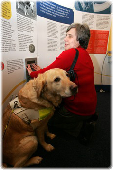 "Guide Dogs is delighted with the audio guide system, which allows blind and partially sighted people to appreciate and engage with the "Moving Forward Together" exhibition. The Orbital AV system complements a range of three-dimensional, touch sensitive exhibits to bring alive the information for those with sight loss".